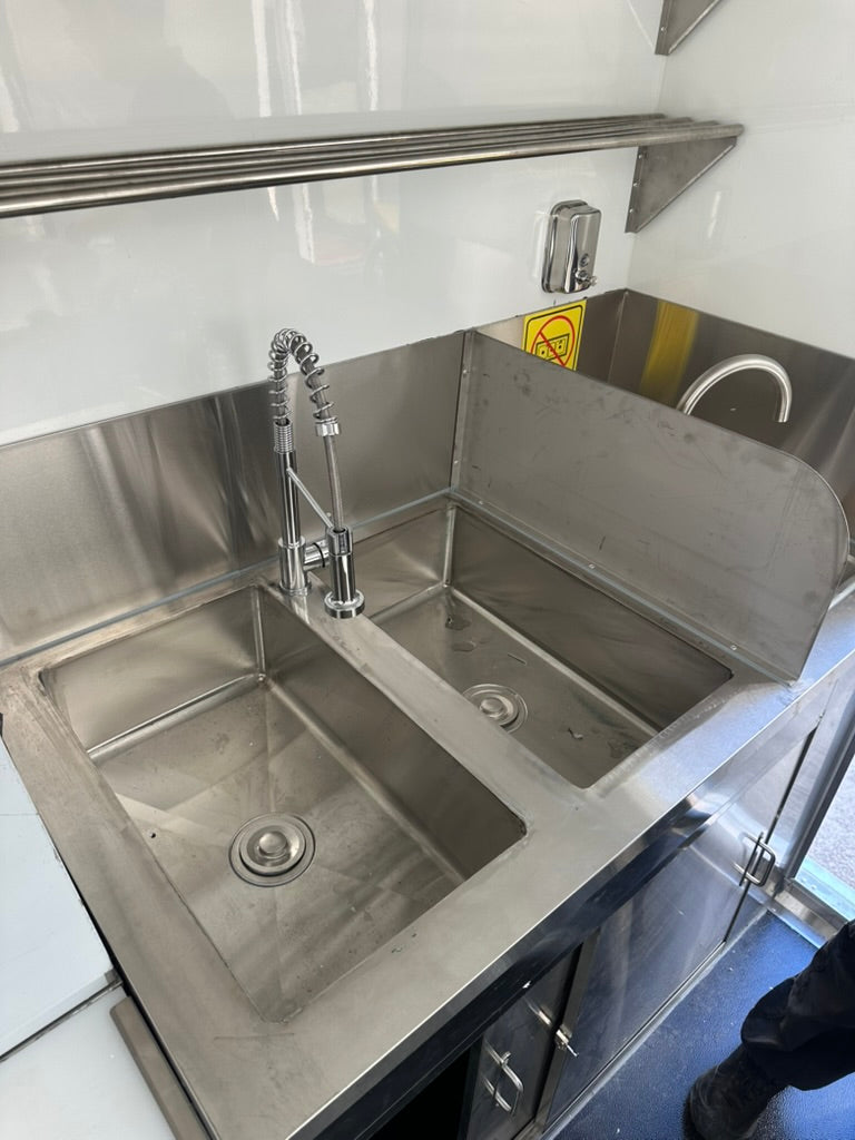 Your council has rules. Your workflow has needs. Our 2+1 sink design meets both. Wider, deeper, seamless for easy cleaning – and fully customizable in size to fit your largest equipment. Place it by the service window for coffee bars, or near the range hood for cooking stations. That stainless steel lid? It's not just a cover – it's extra counter space when you need it most. Because in a busy kitchen, every inch counts.